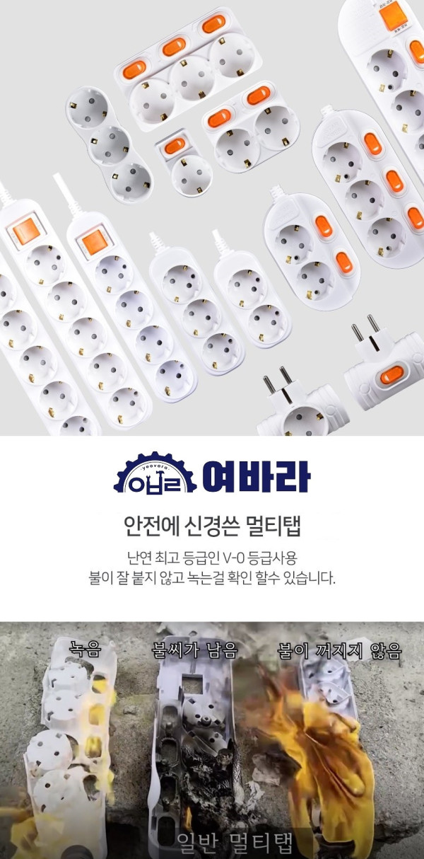 멀티탭 개별스위치콘센트 국산 2구 콘센트 여바라 선없는 스위치