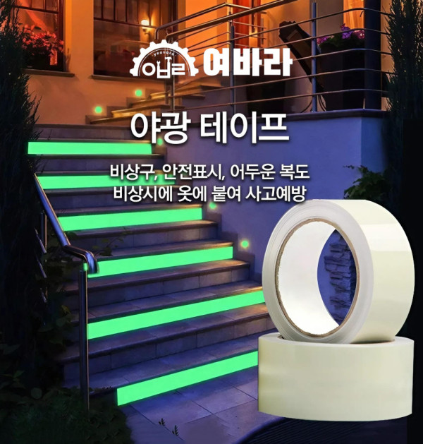 어두운 환경에서도 빛을 발하는 야광 테이프는 여러분의 안전과 편리한 생활을 돕는 훌륭한 동반자가 될 것입니다.